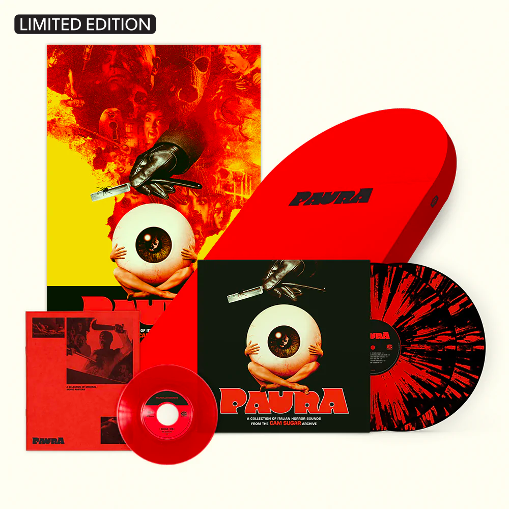 - An exclusive 45rpm vinyl featuring 2 bonus tracks: “L’Ossessa” by Marcello Giombini, and “Le Facce della Morte” by Daniele Patucchi (completely unreleased).