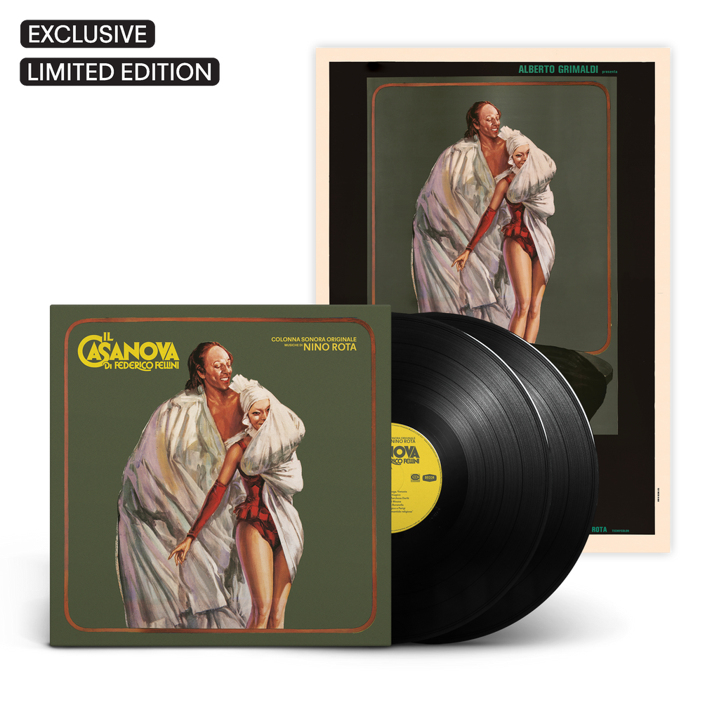 The original soundtrack for "Il Casanova di Federico Fellini” (1976) sees Nino Rota putting into music Federico Fellini"s opus on the legendary Venetian icon and “tombeur des femmes” Giacomo Casanova. Winner of an Oscar for Best Costumes in 1977, the film is one of Fellini's finest, a grotesque and hyperbolic take on the life of Casanova that is matched by Rota"s compositions. !Il Casanova di Federico Fellini” possibly is one of Rota"s most eerie and enigmatic scores, as if the Maestro had finally poured into a soundtrack all of his love for esotericism. The music wraps you up like the Venetian mist. The compositions are constantly on the edge of classical music with playful nuances and the use of instruments like viola and cello. Vocals become a cornerstone, echoing the tradition of 18th century Italian opera. However, Rota also leaves room for more experimental and estranging vibes that make the soundtrack a one-of-a-kind voyage into the creativity of the Maestro.